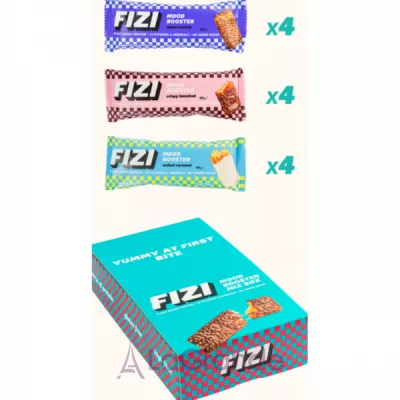 Mood Booster – это линейка низкокалорийных батончиков от FIZI, сочетающих вкус и сбалансированный состав. Каждый батончик содержит 10 витаминов и минералов, порцию клетчатки и менее 1 грамм сахара. И все эти вкусности – всего до 160 калорий. Питательный перекус и хорошее настроение гарантированы!